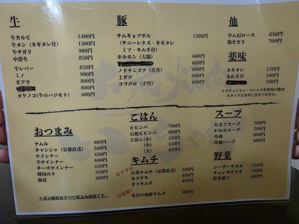 店名に「大衆焼肉」とあるように、価格はとっても大衆的。お財布に優しい価格設定です。
