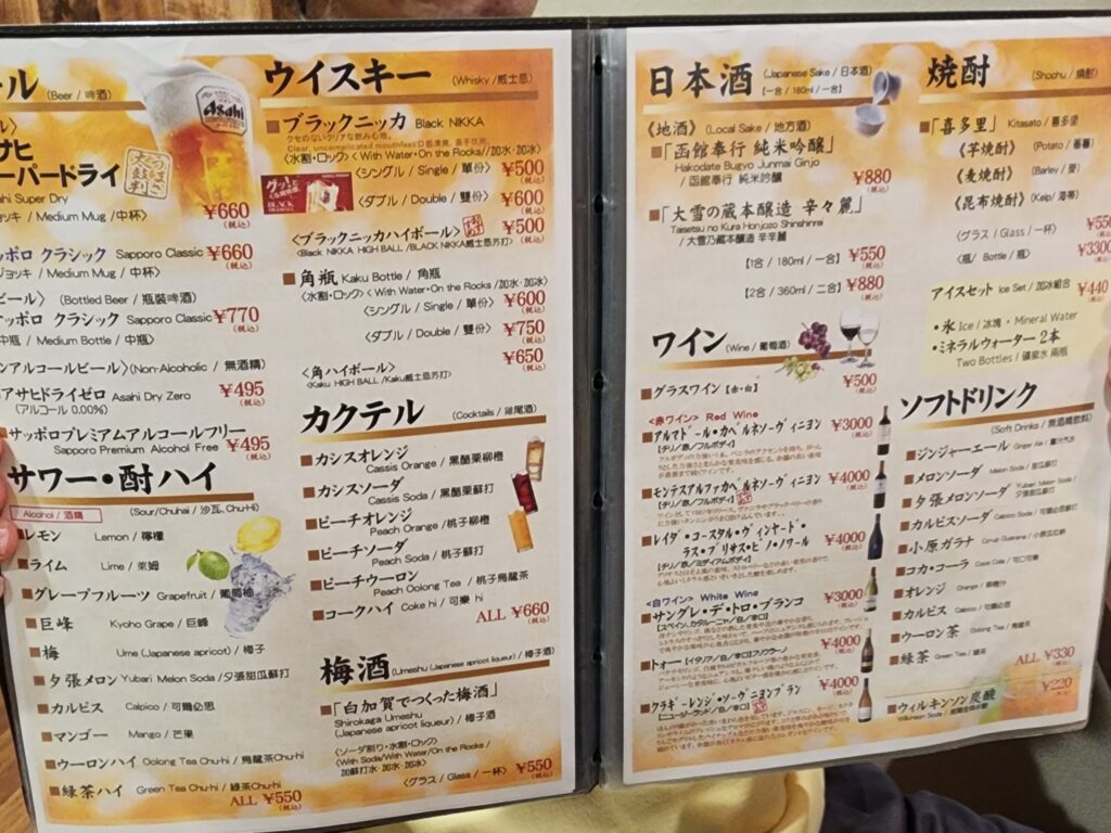 メニューをご覧ください。まずはお飲み物。
