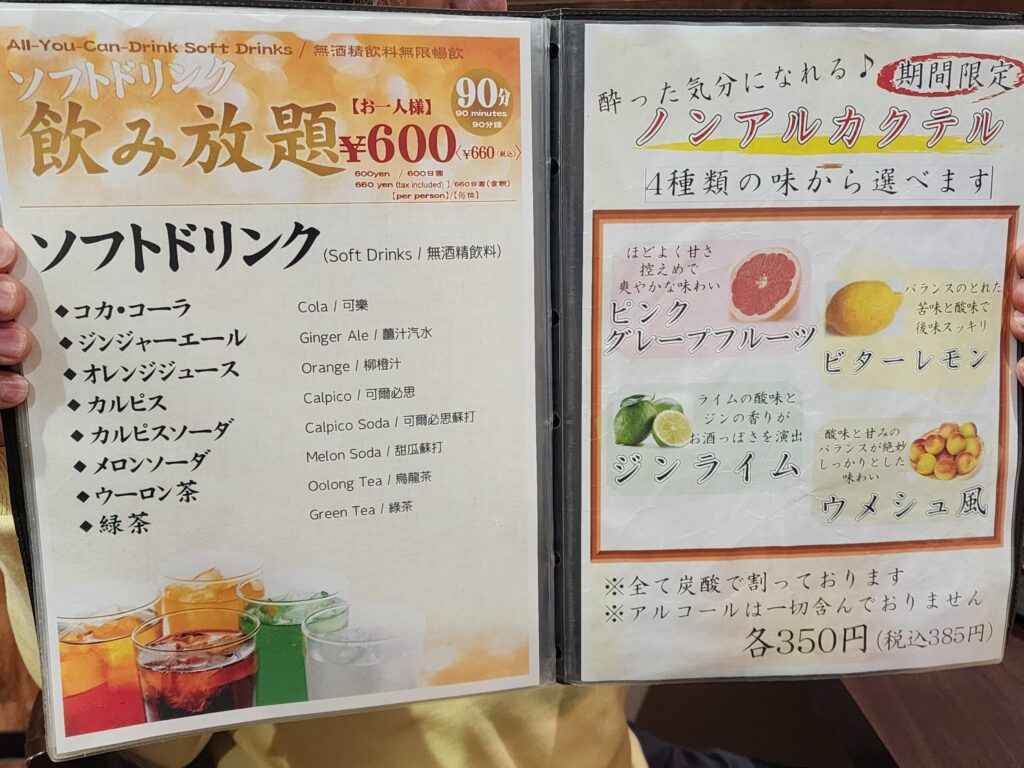 ソフトドリンクの飲み放題も嬉しいですね。