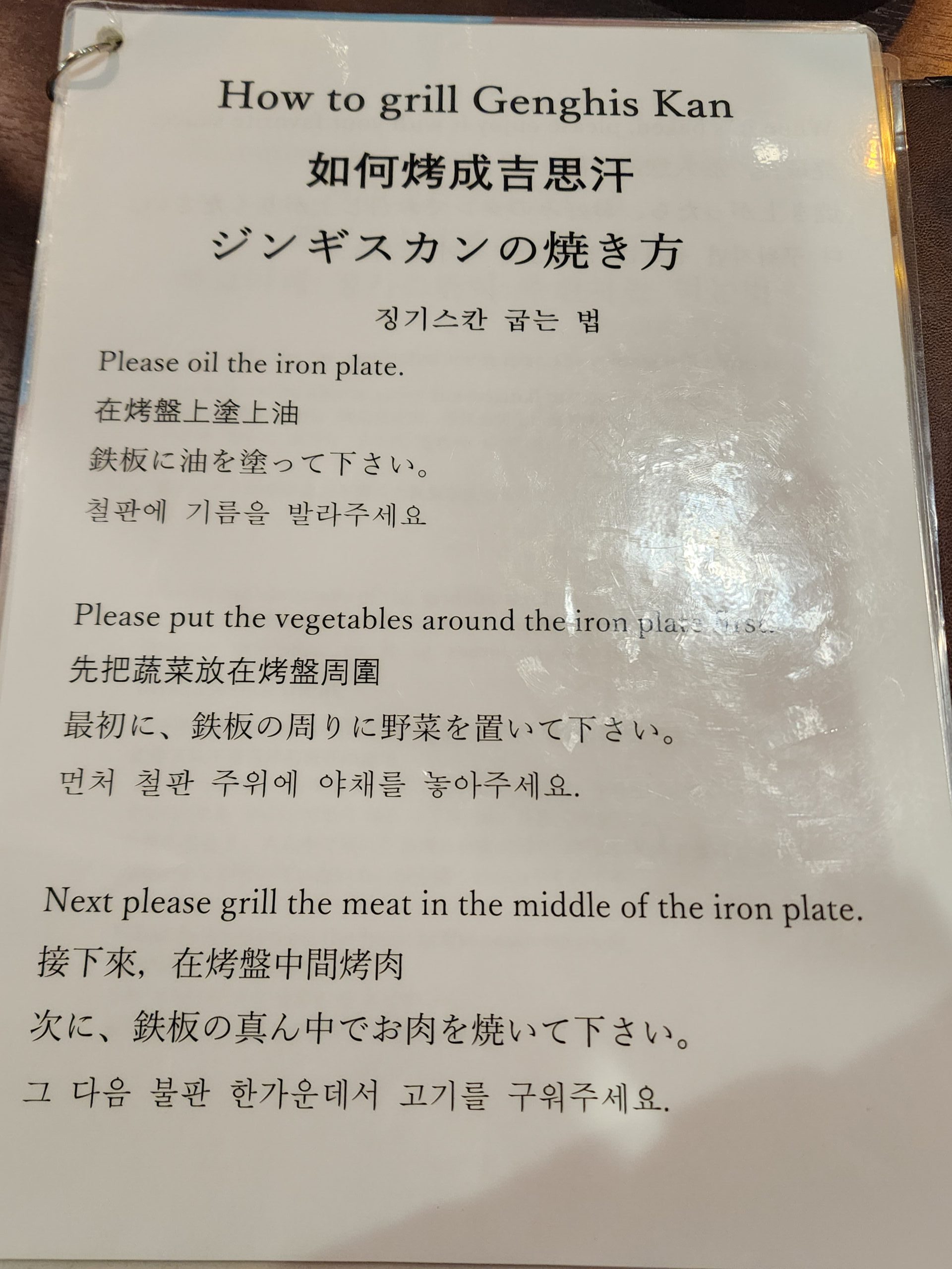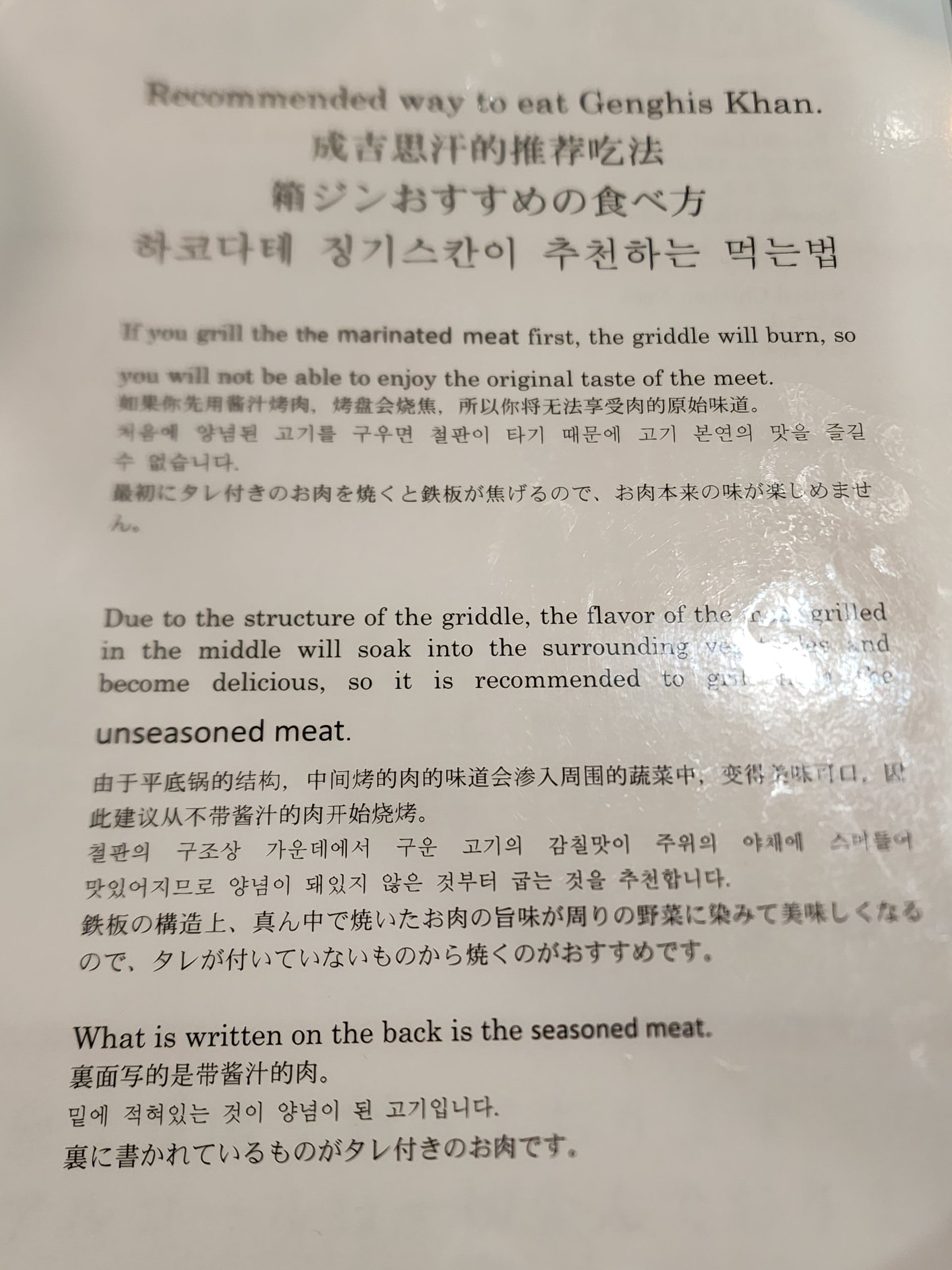 メニューの一番先には焼き方がいろんな言葉で書いてあります。