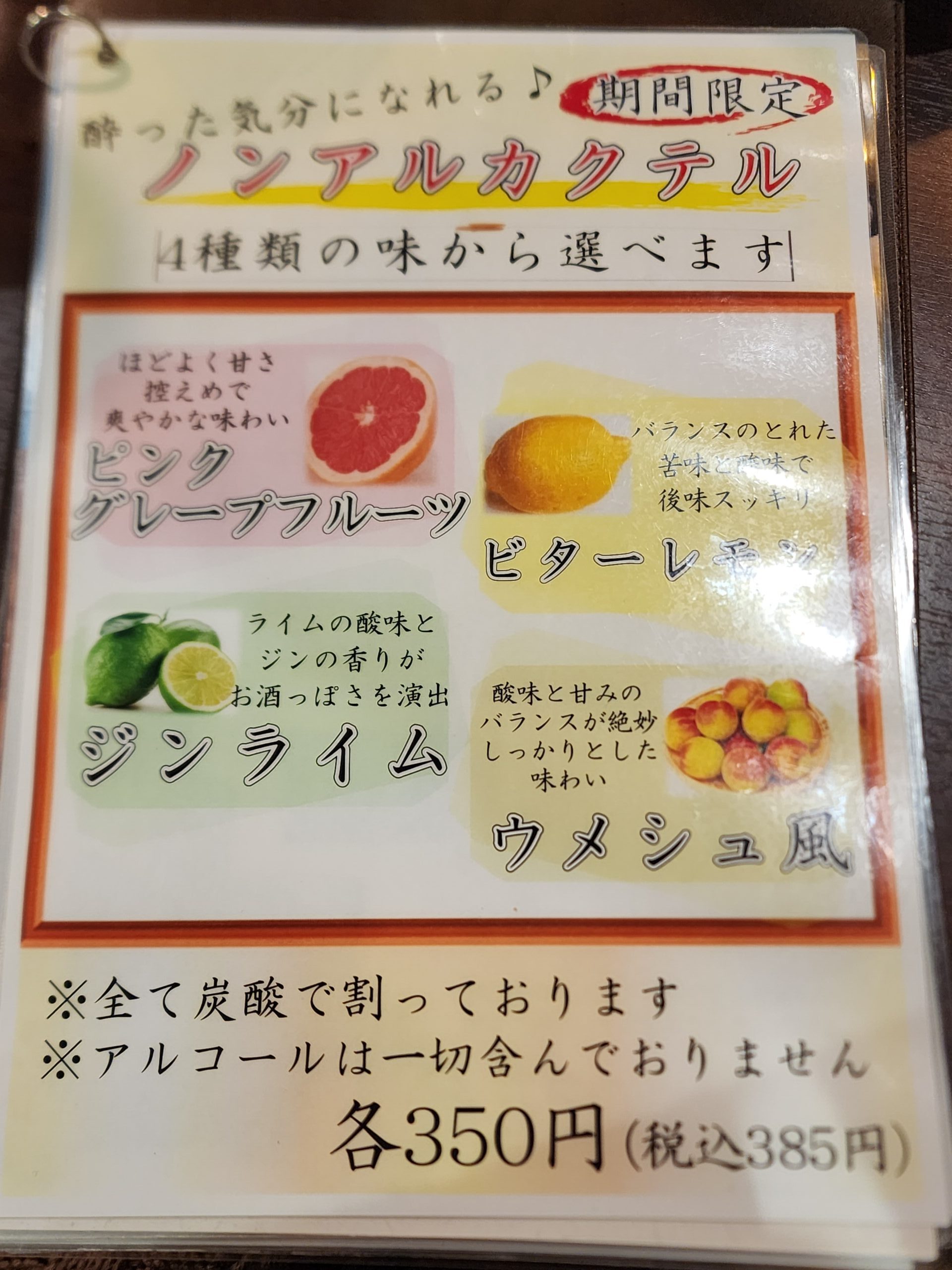 期間限定でノンアルカクテルがたくさんありました。